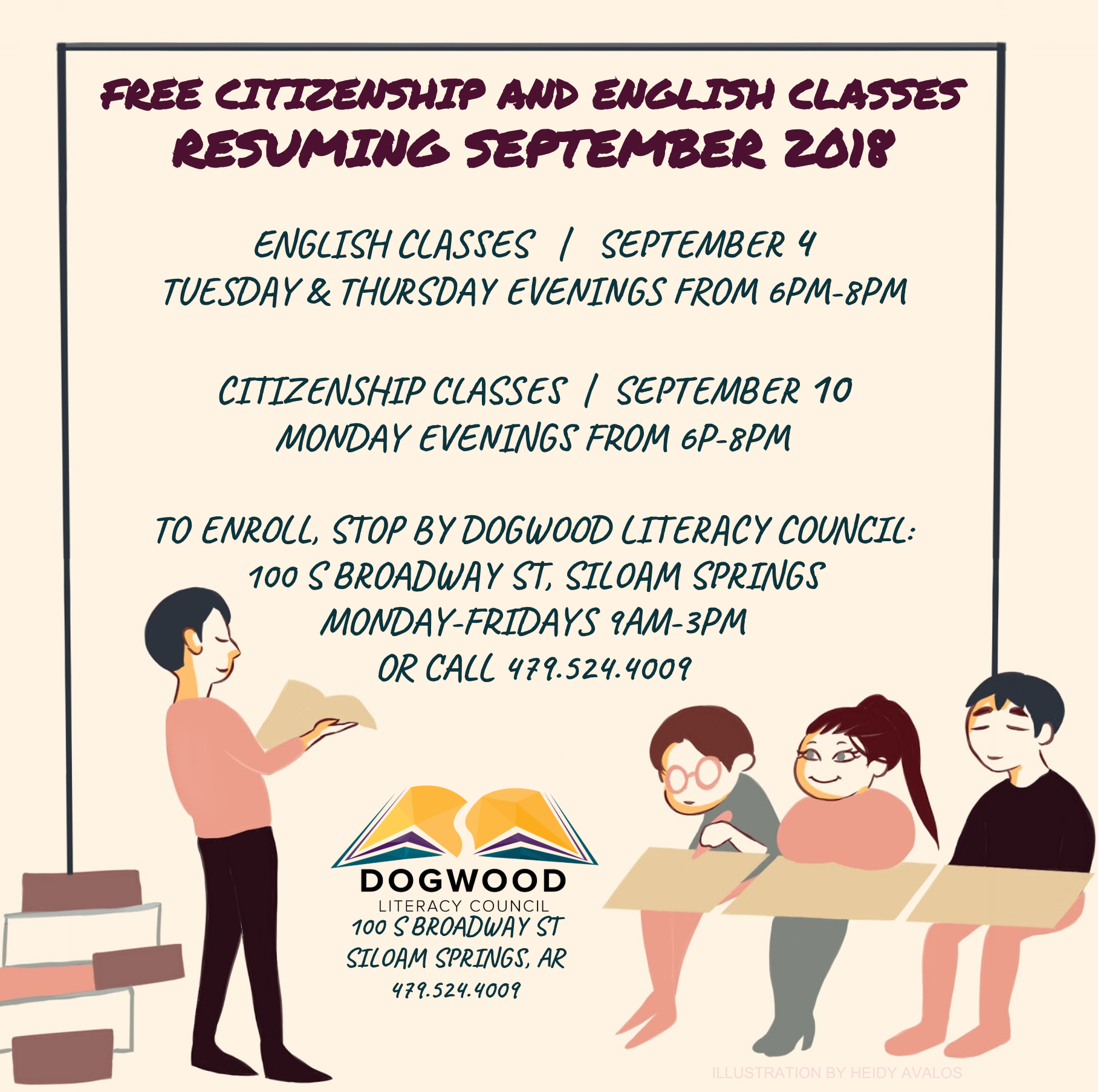 ENGLISH AND CITIZENSHIP CLASSES RESUMING SEPTEMBER 2018