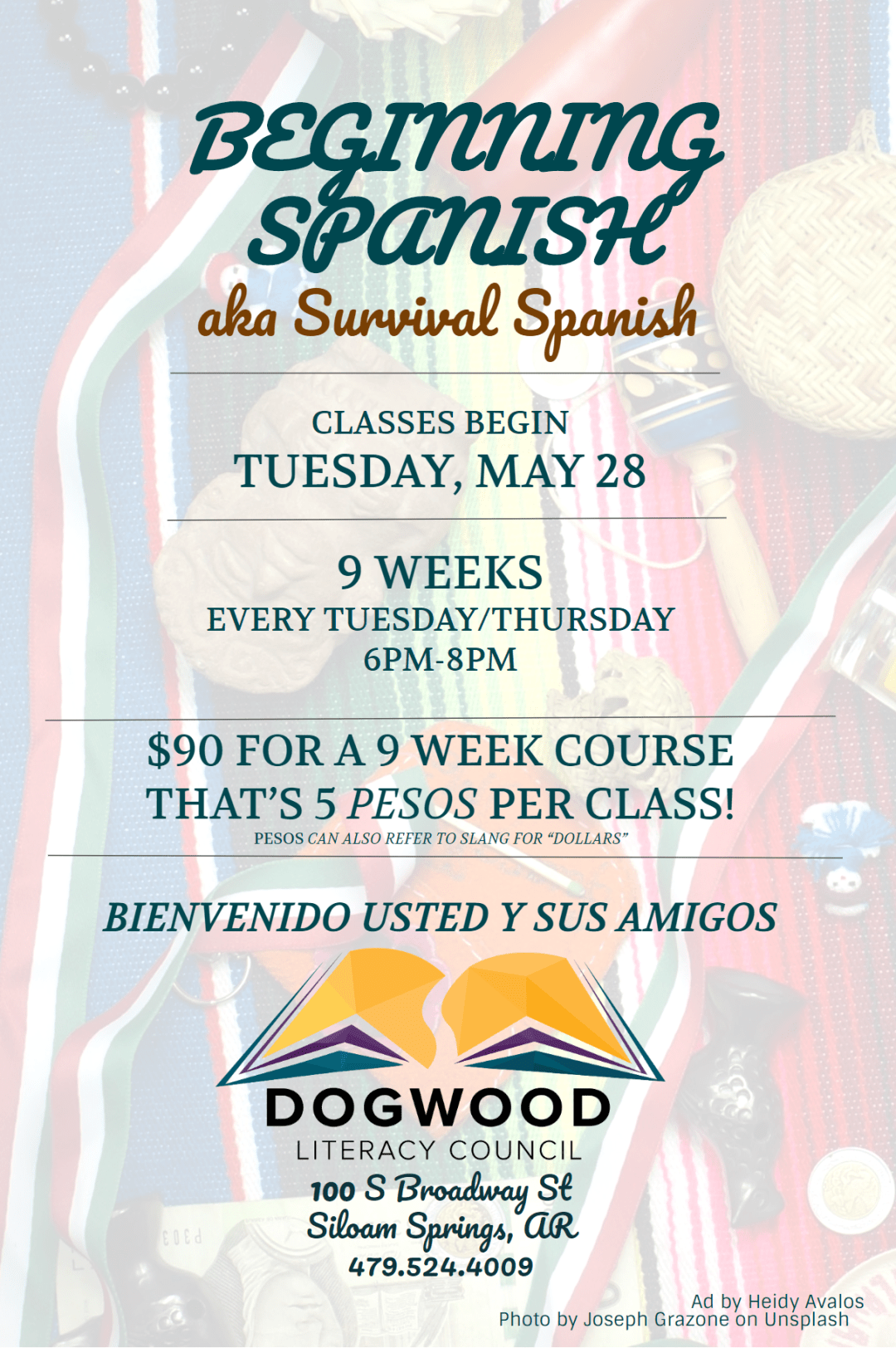 Through the generous time and effort of our volunteers, DLC is offering a 9-week Beginning Spanish course. We have a volunteer who wants to help DLC raise funds this summer to support our other continuously free courses, including English reading and writing and Civics tutoring. Join us and invite your friends! This is a great value for an in-demand language in our area! ¡Ahí nos vemos! *Please note all of our other offered services continue to be free.