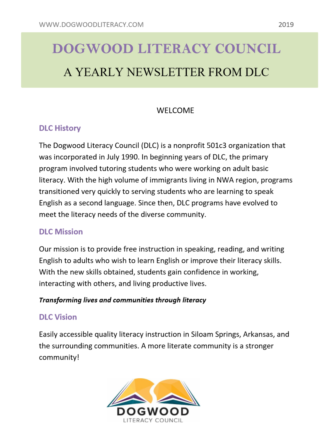 2019 DLC Newsletter (pdf) Learn how you can become a part of DLC and/or support us. Click to share on X (Opens in new window) X Click to share on Facebook (Opens in new window) Facebook Click to email a link to a friend (Opens in new window) Email Click to print (Opens in new window) Print Like Loading... Published by dogwoodliteracycouncil Executive Director View all posts by dogwoodliteracycouncil