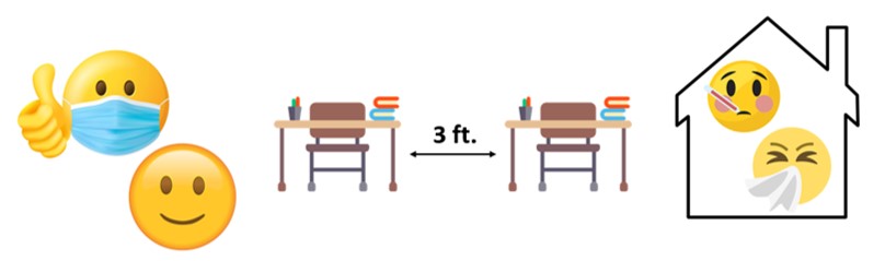 Las cubrebocas son opcionales y los escritorios están tres pies de distancia. Los cuartos de clases, los escritorios, los bolígrafos y las puertas se limpian después de cada clase.